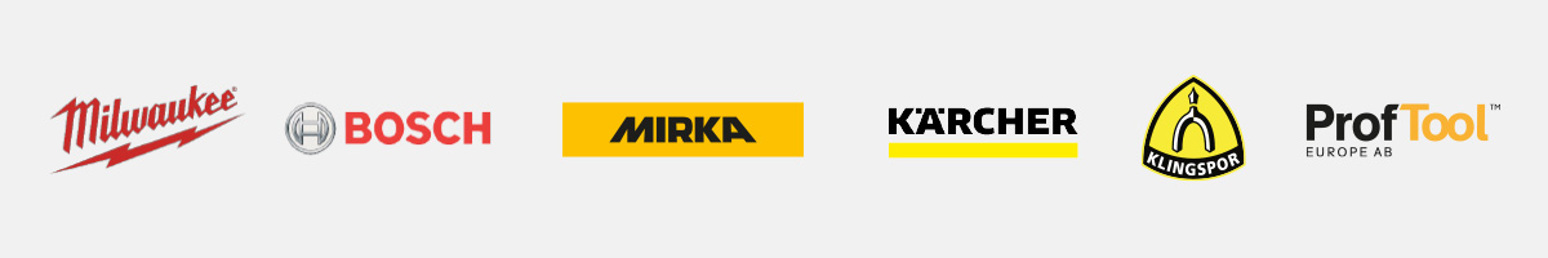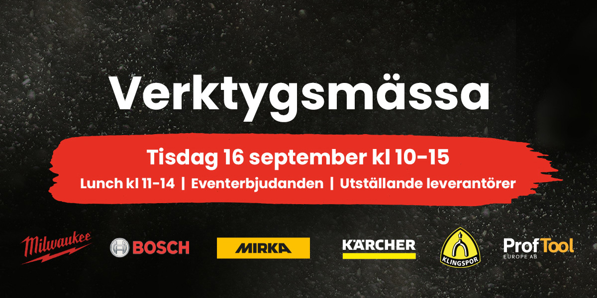 Du möter Milwaukee, Bosch, Mirka, Kärcher, Klingspor och ProfTool som är redo att visa upp det senaste.