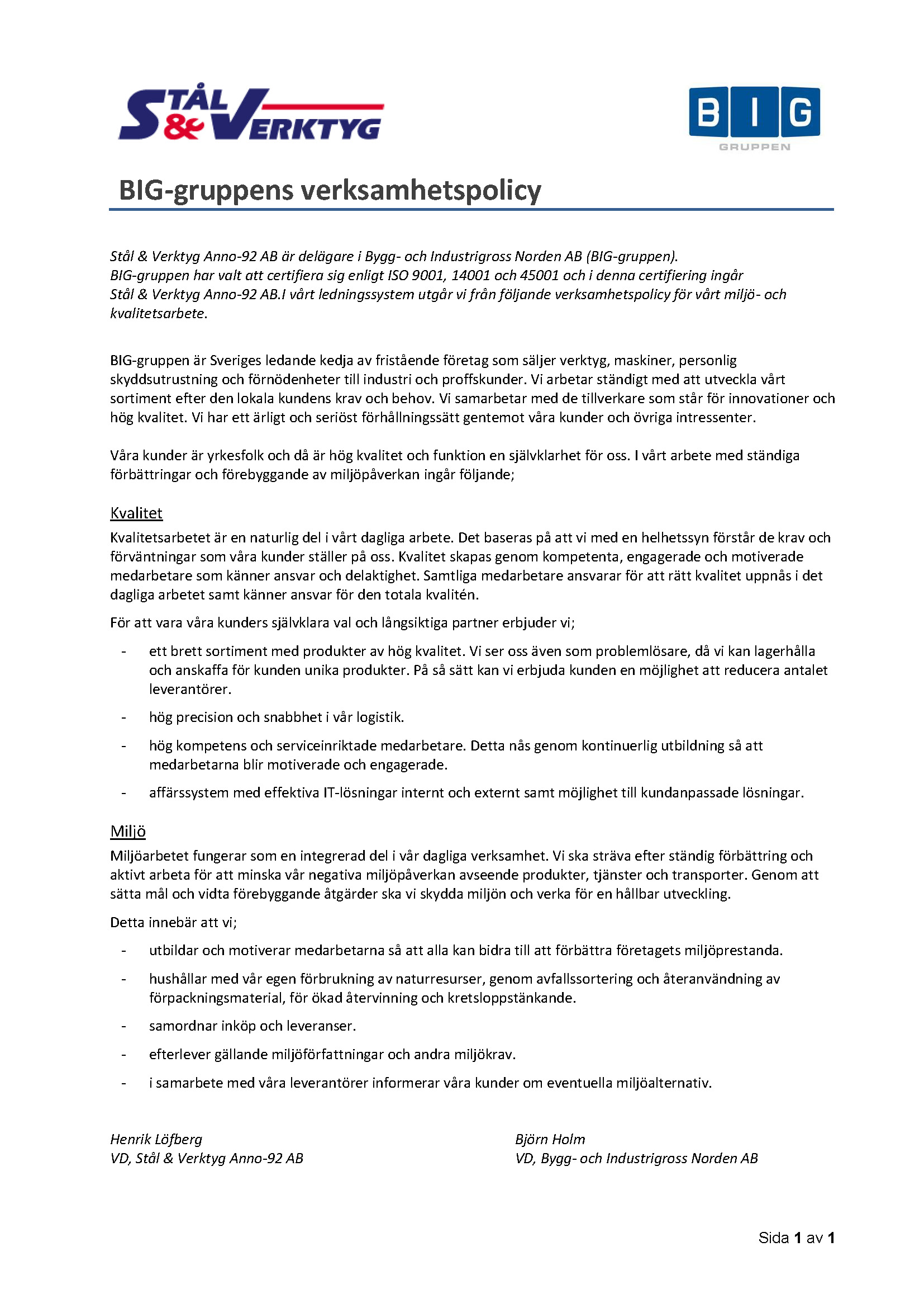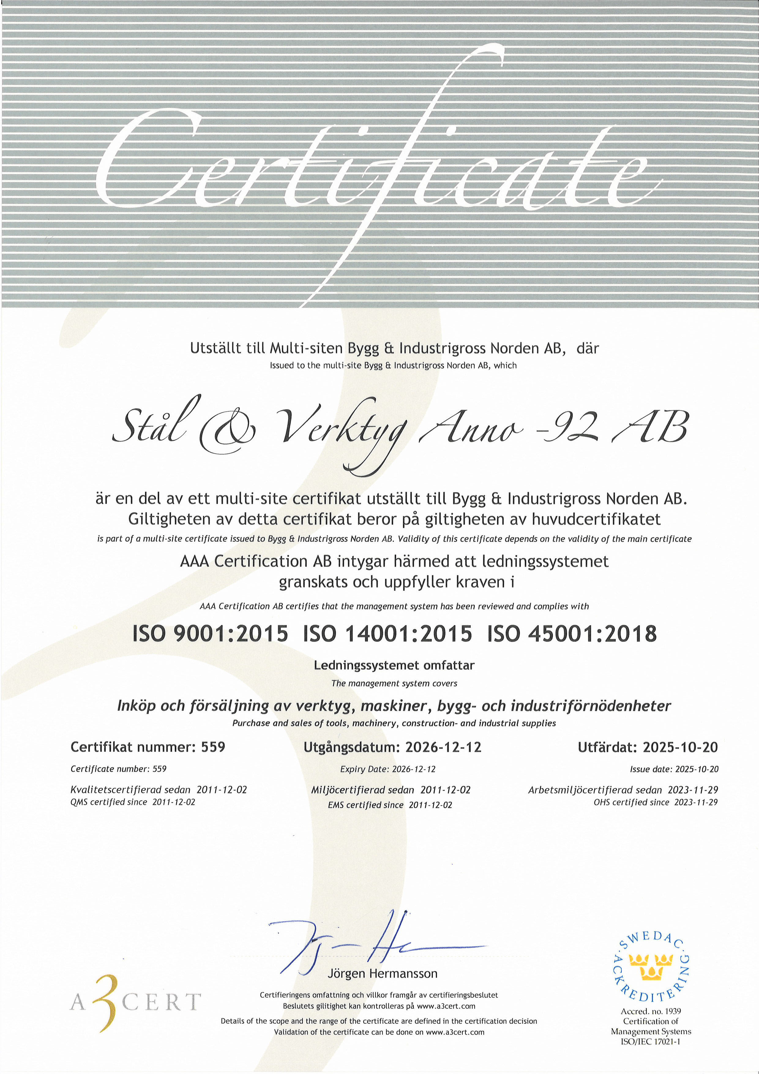 Här kan du ladda ner vårt ISO-certifikat och vår verksamhetspolicy.