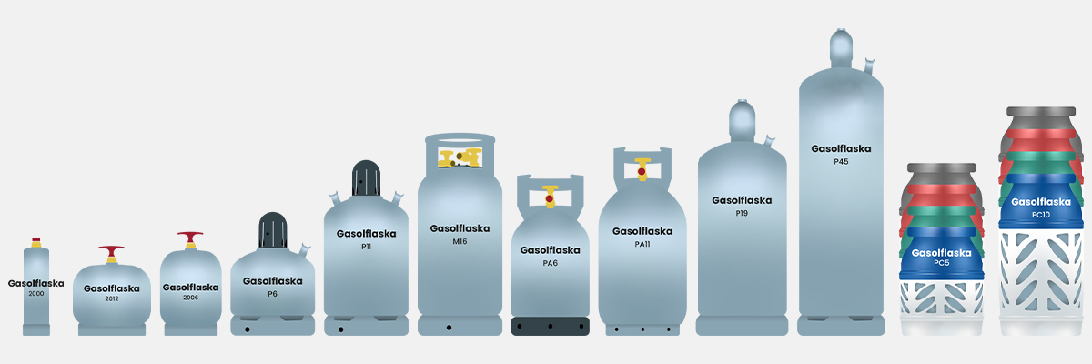 Vi erbjuder både hyrflaskor och köpflaskor med industri- och livsmedelsgaser samt gasol.